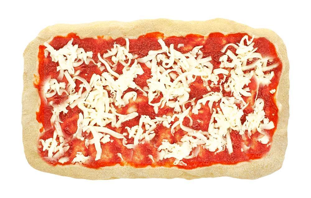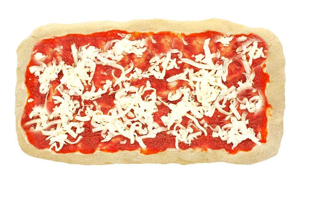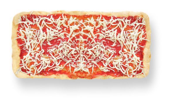 Mit Tomatensoße und echtem Mozzarella. Ideal als Riesenpinsa oder zum Verkauf für Pinsastücke
